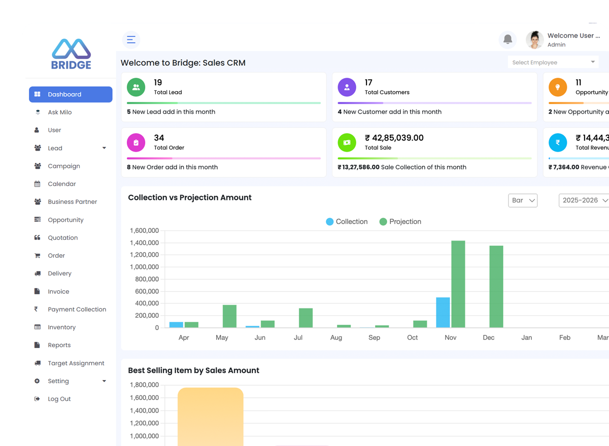 Vista is the core sales CRM of Bridge, managing the complete lead-to-invoice lifecycle in a single connected system. It centralizes customer data, sales pipelines, quotations, and order visibility while syncing seamlessly with ERP systems. Designed for long and complex manufacturing sales cycles, Vista ensures precision, forecasting accuracy, and execution control.